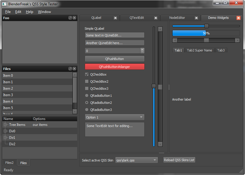 Create your custom Qt qss skin in just few minutes! This is a Qt Skin Generator Template for Qt Skin Generator. The template consist of multiple icons and separated .styl files and one main skin configurator. More information can be found here: https://www.blenderfreak.com/products/qt-skin-generator-template/
