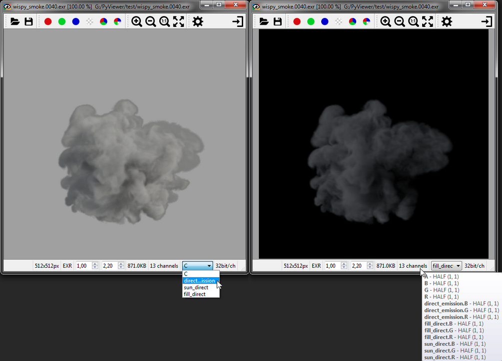 - displaying EXR layers stored in file
